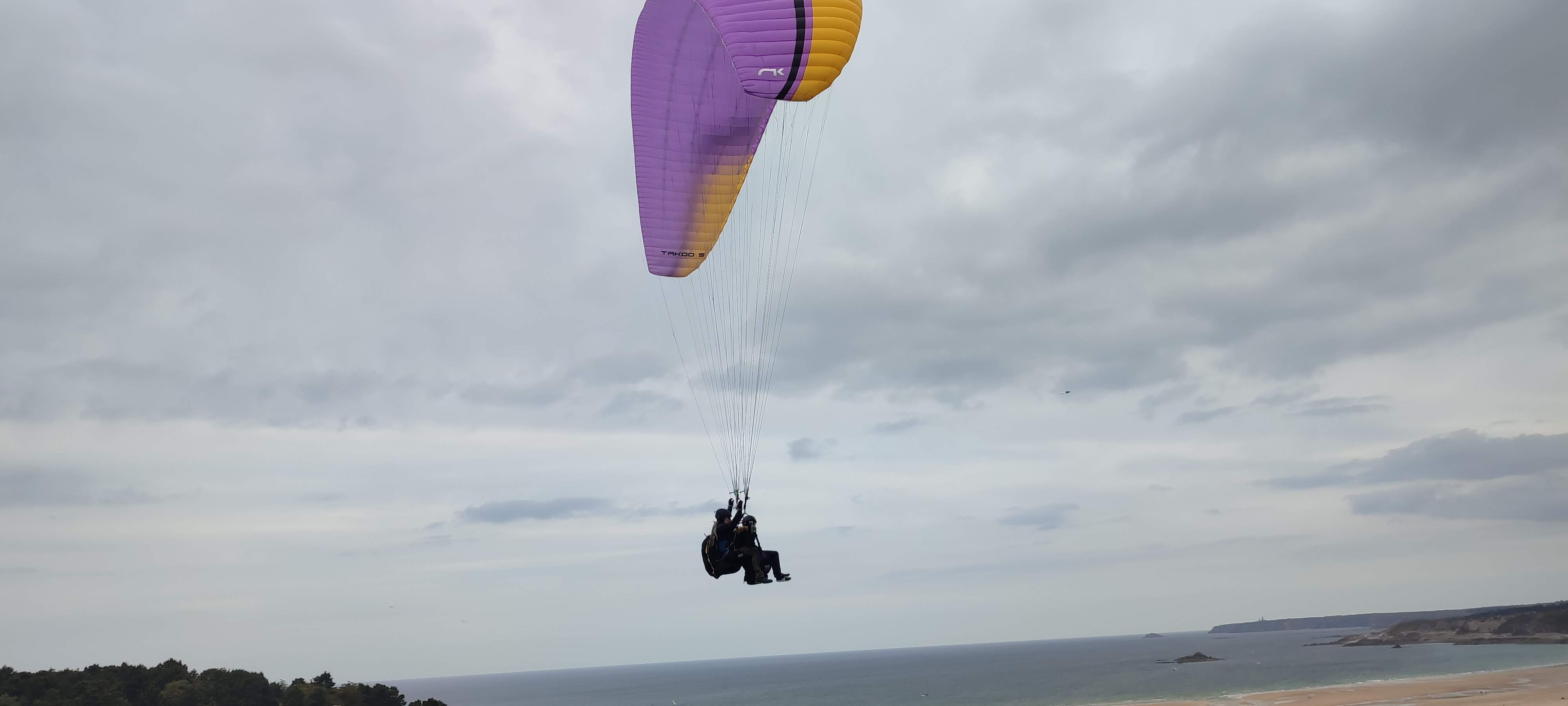 Un grand merci pour ce vol en duo le jour du solstice d'été. Super sensation en vol sur Pleneuf Val André. Le dieu Eole était au rendez-vous et avec marée haute. Sensations avec adrénaline garanties. Merci à J.C pour sa maîtrise et son professionnalisme. Merci à Carole pour l'accueil. Je recommande vivement. Ça vaut le coup. Laissez vous tenter. Daniele Sacchet