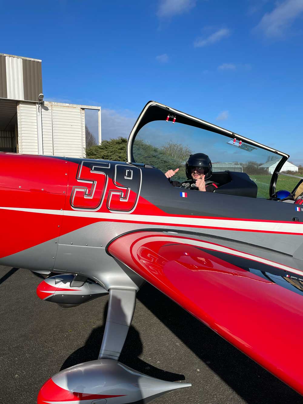 Étant jeune pilote voltige espoir, je recommande fortement à mes camarades sur biplace, mais également ceux qui n’ont aucune expérience dans ce domaine, de decouvrir cette autre dimension avec cet avion EXTRA-ordinaire mais aussi et surtout avec ce pilote! Vincent vous mettra tout de suite à l’aise, et ce dès le premier contact! Hyper rassurant en vol, on sent tout de suite la grande expérience de cet aviateur, en effet tu as de bons restes de tes championnats passés 😉 Cette journée m’a conforté d’avantage dans ma passion pour la voltige et m’a également motivé pour ma progression dans ce domaine Bref, ce fut riche en émotions et en expérience de vol Merci Vincent et à bientôt 🛫