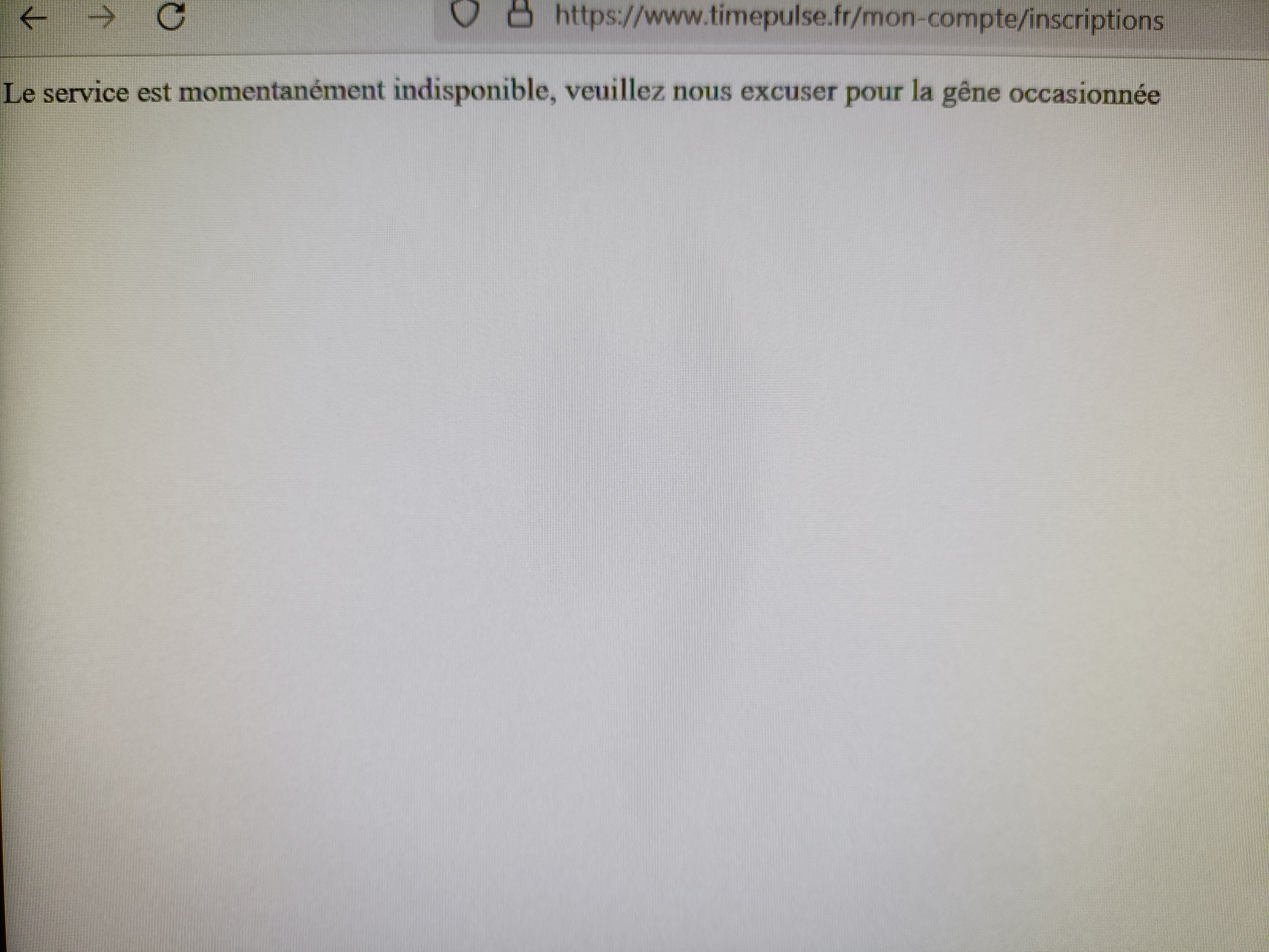 Suite à un dernier avis précisant un problème de connexion, j'ai eu une réponse de leur part mais complètement à coté de la plaque et je ne peux toujours pas m'inscrire aux courses souhaitées. Ne répondant pas au téléphone ni aux mails, je vais prendre de mon temps précieux que vous dites si bien pour vous rendre visite sur votre lieu de travail.